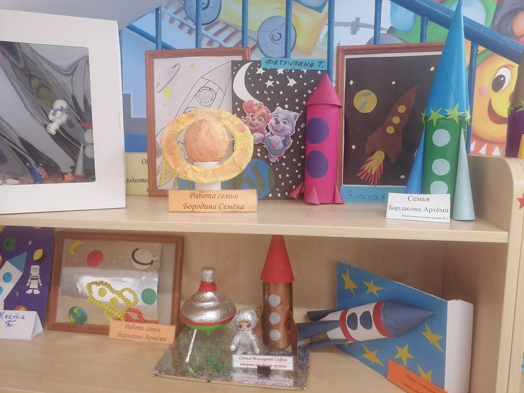 На выставке можно увидеть рисунки, поделки, аппликации из всевозможных материалов и разных размеров. Это космонавты и космические пришельцы, ракеты разных марок, планеты, дидактический материал. Фантазия и творчество наших родителей не знает границ! Все работы отличались индивидуальностью и неповторимостью. Огромнейшее спасибо всем участникам, которые нашли время для участия и проявили интерес к жизни сада!