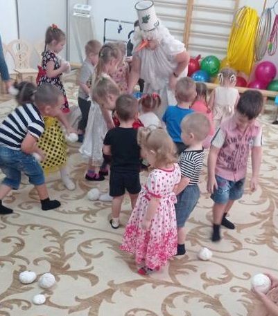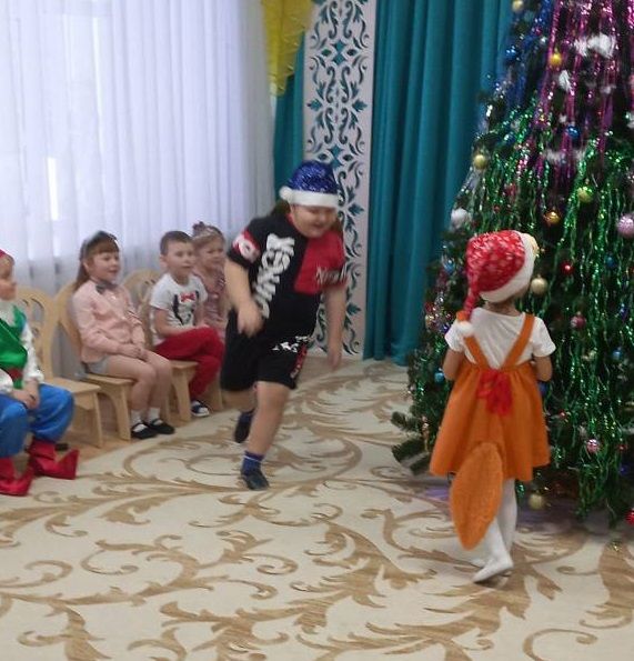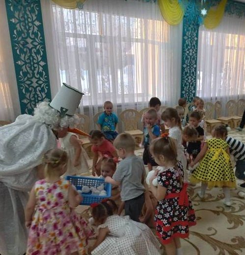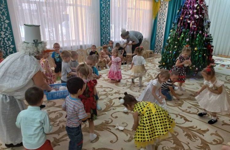 В гости к ребятишкам приходил веселый Снеговик. Он играл с детьми в снежки, загадывал загадки, а дети научили Снеговика танцевать. Весело и задорно исполнили зажигательный танец «Мы повесим шарики». Дети с удовольствием под весёлую музыку водили хороводы, рассказывали стихи, пели песни. На прощание новогодняя красавица в последний раз в этом году подарила сияние своих огней. В завершении праздника дети прощались с ёлкой до следующего Нового года: «До свидания, ёлочка, до будущей зимы, долго тебя, ёлочка, будем помнить мы!».