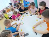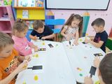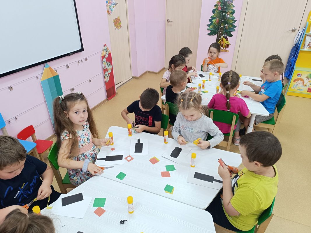 Дети с интересом слушали рассказ о происхождении первого светофора, повторили правилами безопасного перехода улицы, знания о волшебных огоньках, по очереди были светофорами в игре "Светофор и машины". С уголке безопасности детям предложены дидактические игры, направленные на развитие дорожной безопасности детей. Вместе с Еленой Алексеевной они выполнили аппликацию "Светофор".