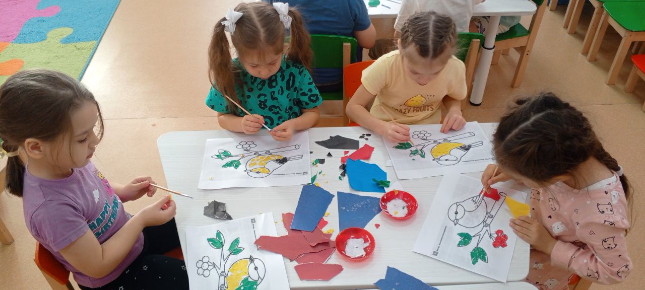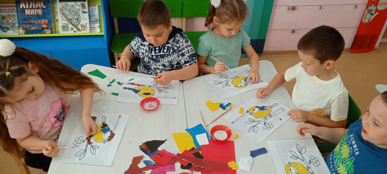 В ходе занятия ребята познакомились с синичкой и ее образом жизни, прослушали тематические стихотворения. Дети выполнили аппликацию в нетрадиционной технике, из кусочков рваной бумаги, которую сами приготовили. Занятие было интересным и насыщенным.
