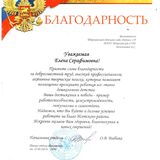 Отдел образования Исетского муниципального района выразил благодарность Белоноговой Е. С., воспитателю нашего детского сада, за профессионализм, добросовестный труд. Поздравляем Вас, Елена Серафимовна с заслуженной наградой! Желаем благополучия, успехов во всех начинаниях!